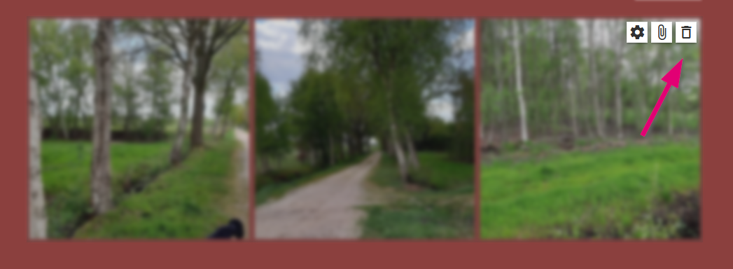- Die einzelnen Seiten durchgehen und prüfen, welche Elemente nicht mehr benötigt werden. Fährt man mit der Maus über das Element (hier eine Fotogalerie) erscheint ein Papierkorb Symbol, mit dem das Element von der Seite entfernt wird.